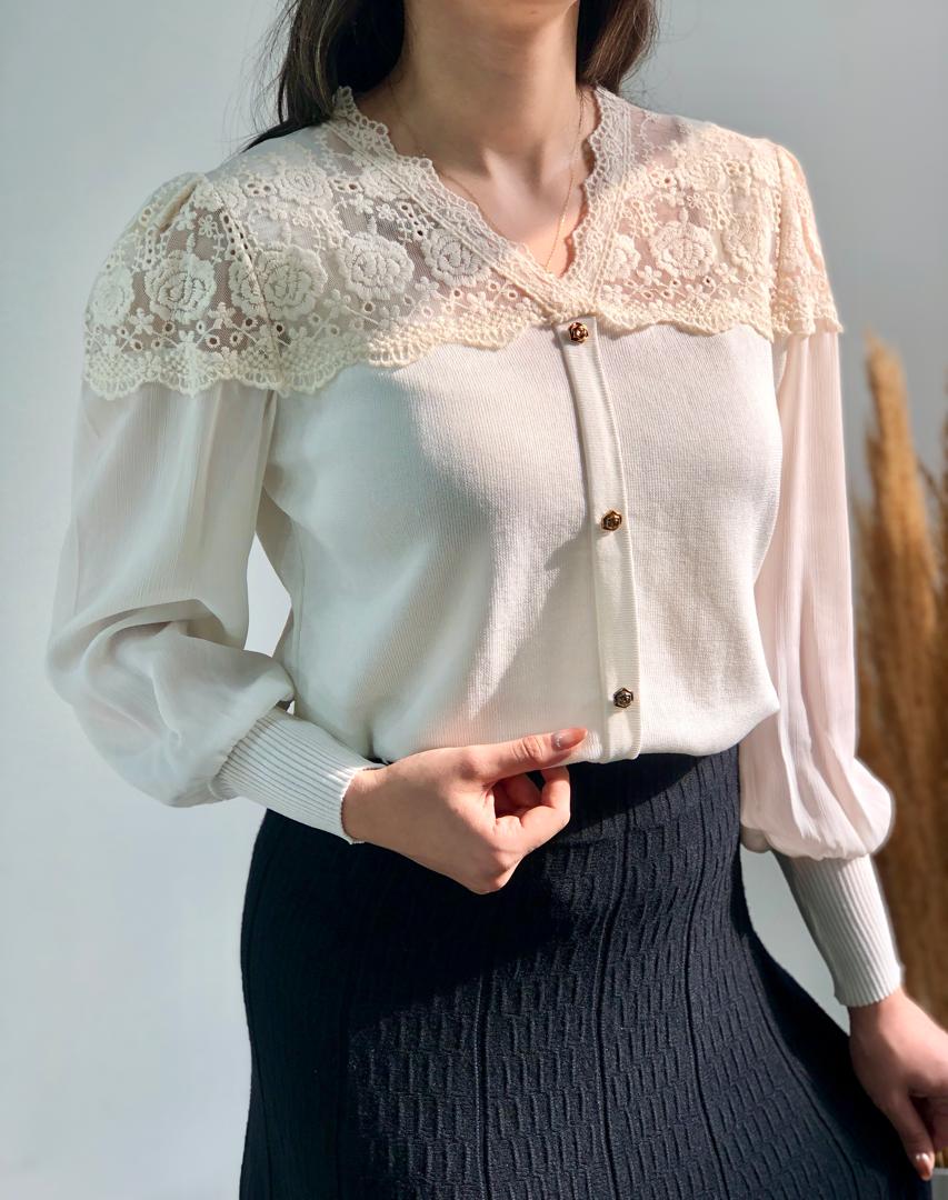 یه شومیزدلبر با یقه گیپورش که خاص ترش کرده🥰تومهمونی بپوشش و بدرخش🤩♥️