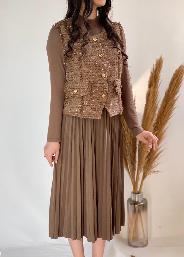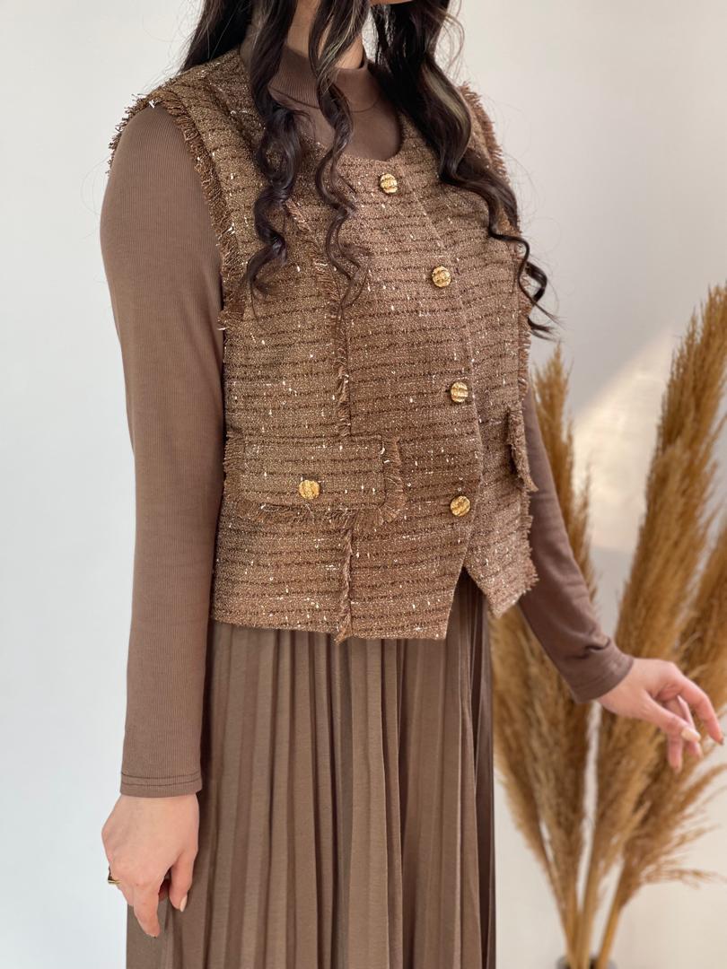 یه پیراهن شیک دوتیکه♥️با یه ژیله خاص همراهش🥰که‌هم‌میتونی باهم استایلش کنی هم جدا ست کنی