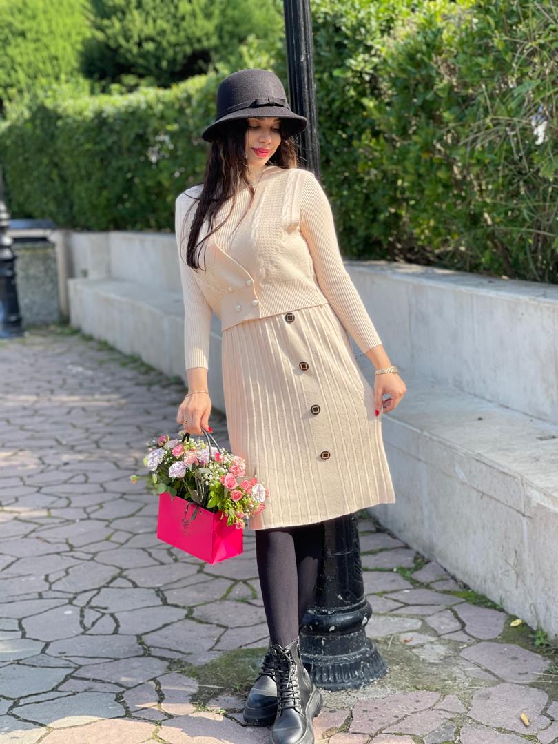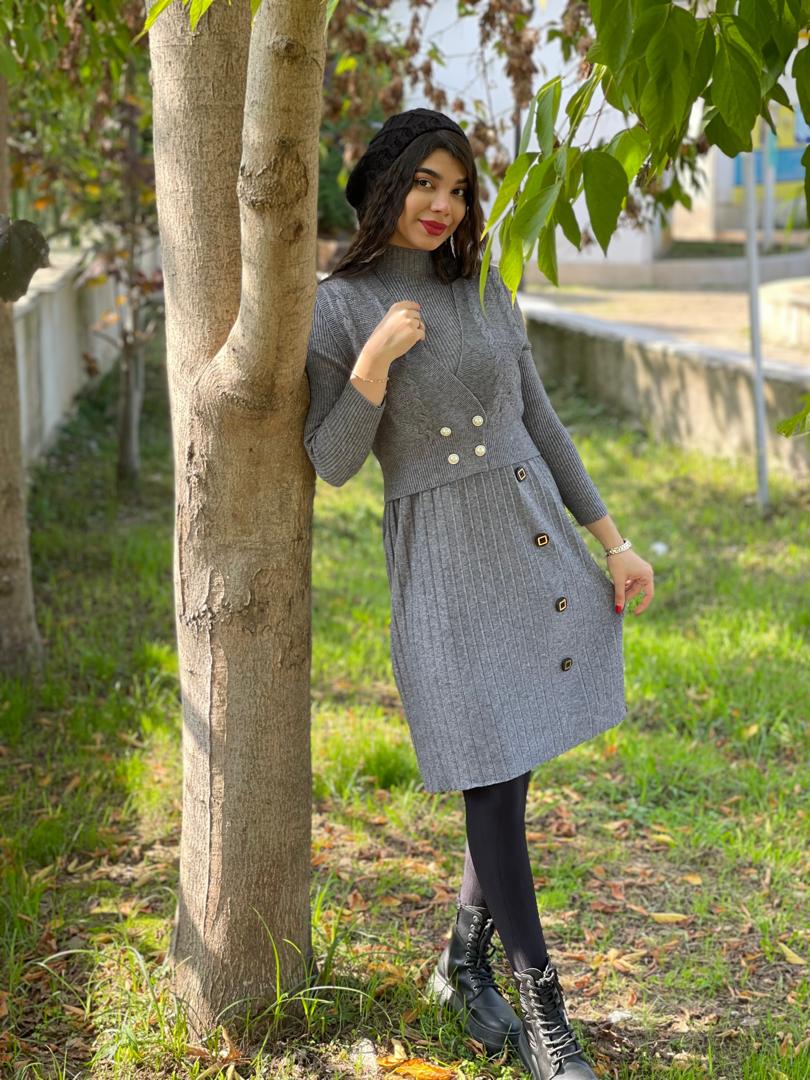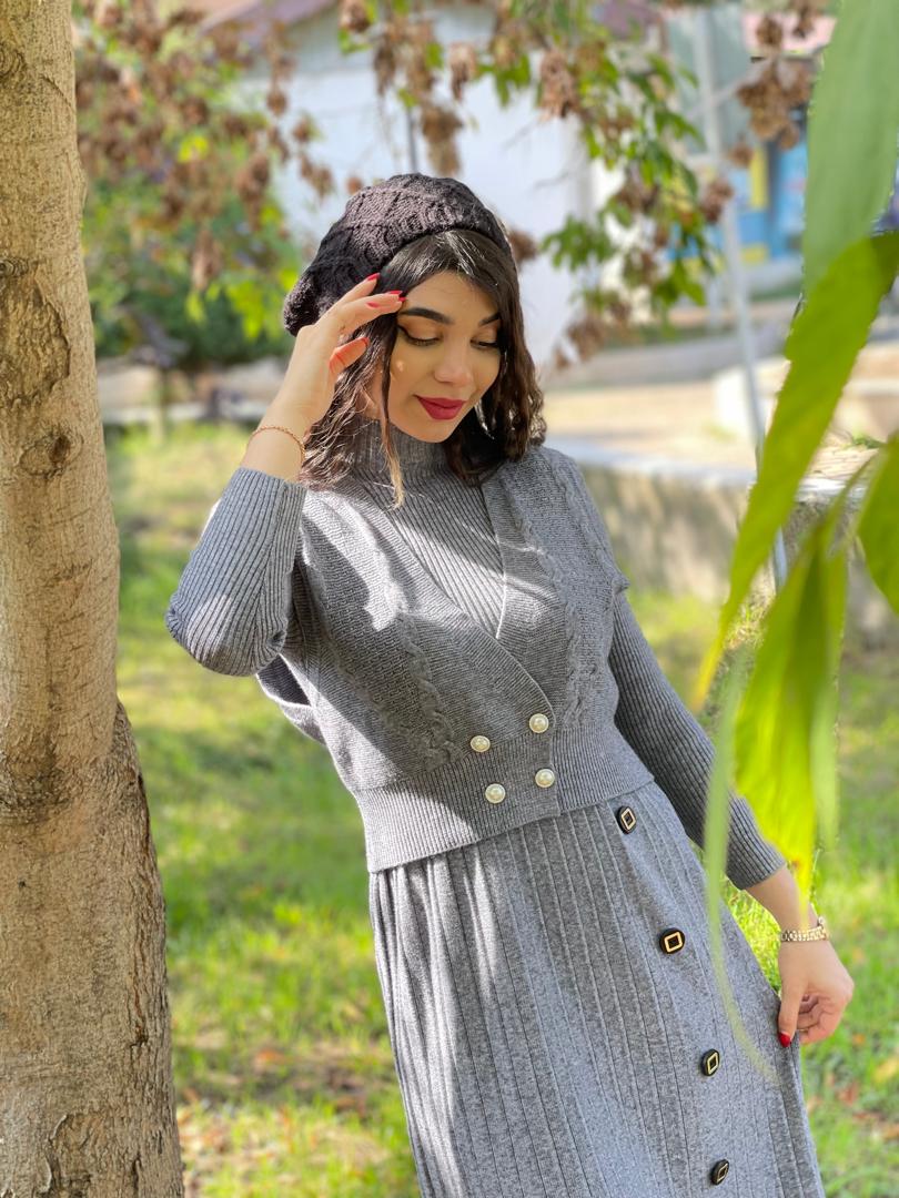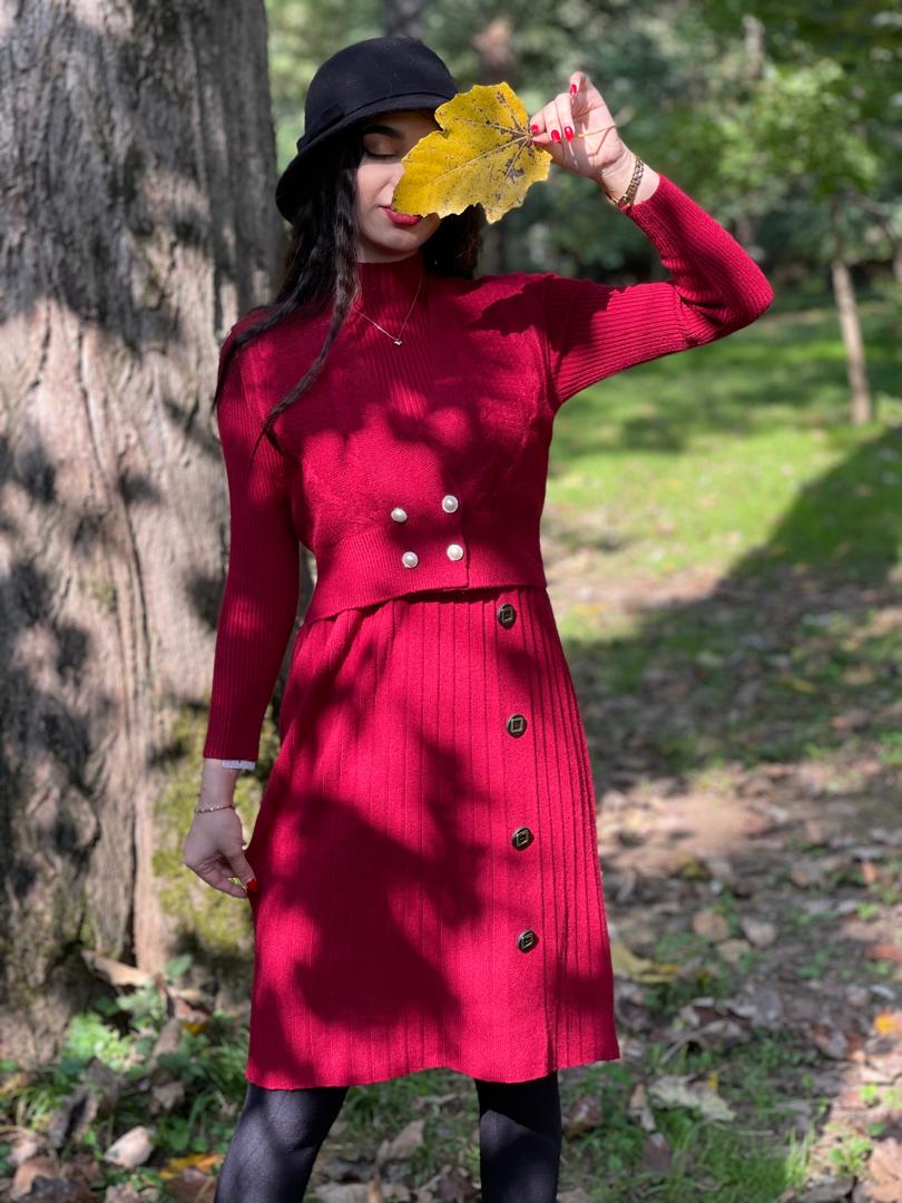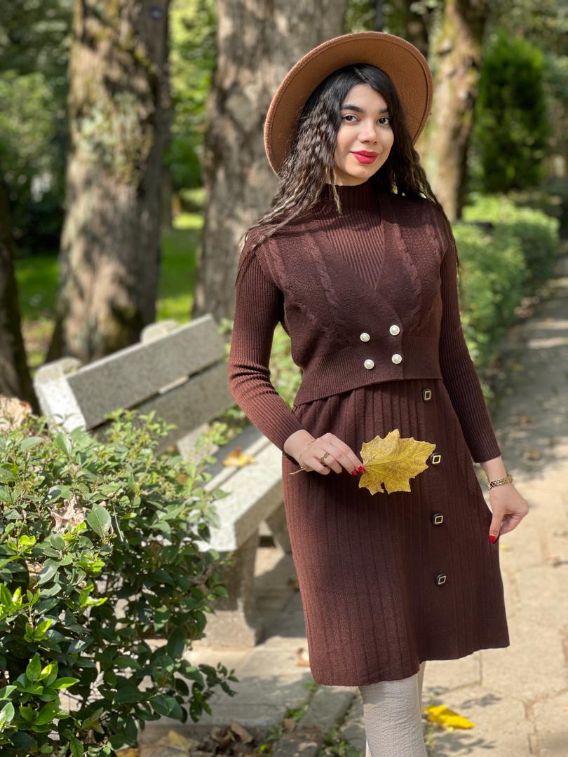 هم یه پیراهن بافت داری هم یه ژیله شیک و خاص که میتونی کلی استایل پاییزه بزنی🍂🍁😍